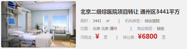 北京二級(jí)綜醫(yī)院項(xiàng)目轉(zhuǎn)讓 通州區(qū)3441平方