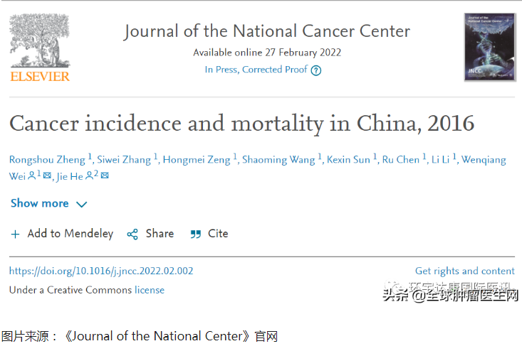 2022年2月,中國科學(xué)院赫捷院士團(tuán)隊發(fā)布了中國最新一期的癌癥統(tǒng)計數(shù)據(jù),并刊登在了著名的期刊《Journal of the National Center》上。