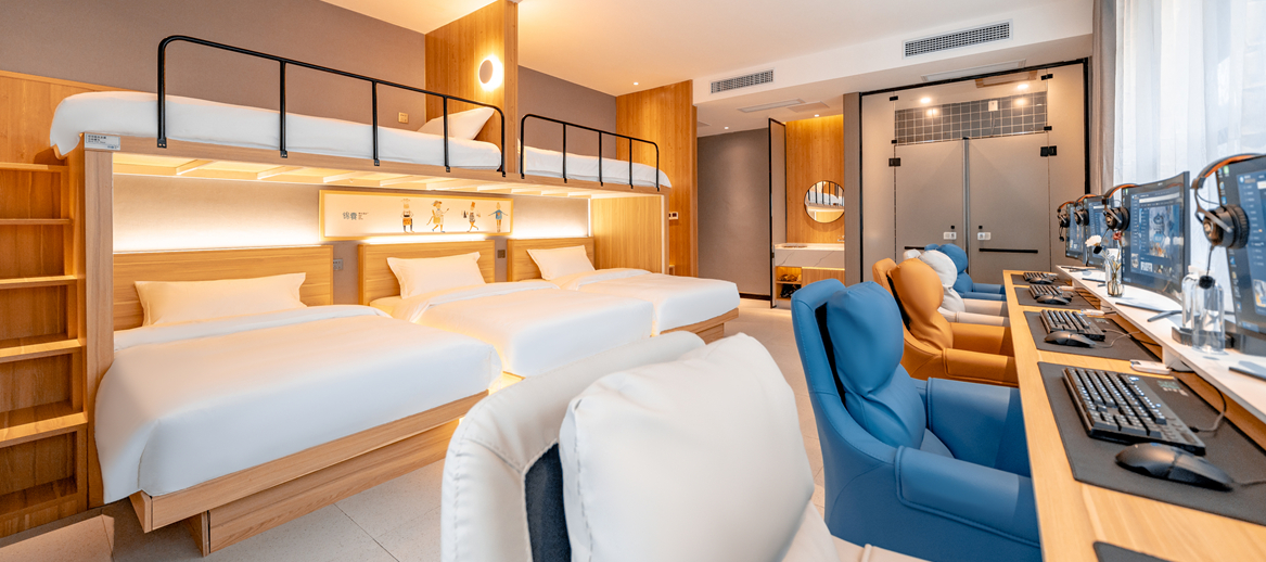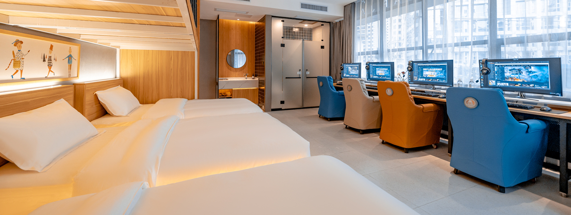 或如果您的酒店入住率未達(dá)90%,想要改造升級(jí),我們提供完美解決方案。只需20-30間客房,就可變身為潮流電競(jìng)空間,不增加您的運(yùn)營(yíng)成本,獨(dú)立引流,客源不斷。