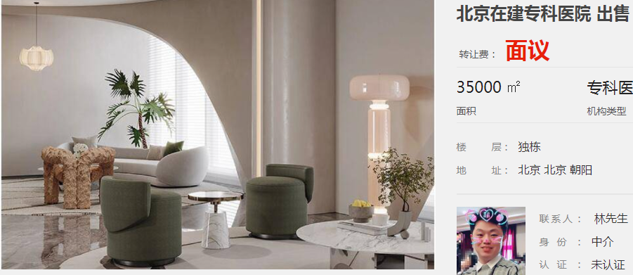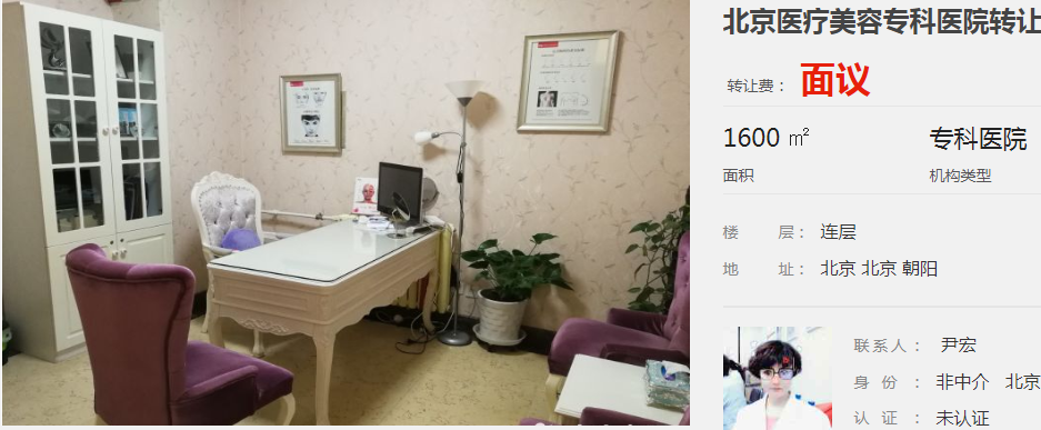 以下是整理后的北京地區(qū)醫(yī)療及美容??漆t(yī)院轉(zhuǎn)讓信息:
