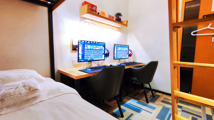 酒店內(nèi)設(shè)有平價(jià)超市、自助入住機(jī)、自助洗衣、運(yùn)動(dòng)健身器械等設(shè)施,為客人提供了便利的生活服務(wù)。此外,酒店還有階梯教室、海量書籍供客人閱讀,以及二十幾款桌游如狼人殺、劇本殺、血染鐘樓等火熱本可玩,讓客人在享受電競(jìng)的同時(shí),也能體驗(yàn)到豐富的娛樂活動(dòng)。