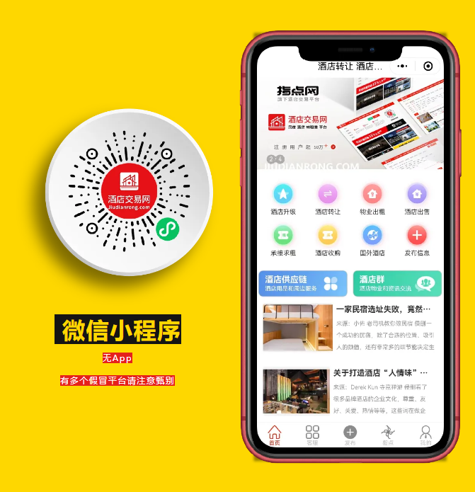 指點網旗下酒店交易網是國內最大的酒店轉讓物業(yè)交易平臺,注冊用戶超50萬。平臺致力于提供國內外酒店轉讓、酒店物業(yè)招租、酒店資產出售、酒店周邊產品與服務信息等綜合服務,酒店交易網堅守不收傭金的態(tài)度,打造真實有效的酒店交易平臺,已是酒店行業(yè)必用平臺之一。(獨立網站+微信小程序)