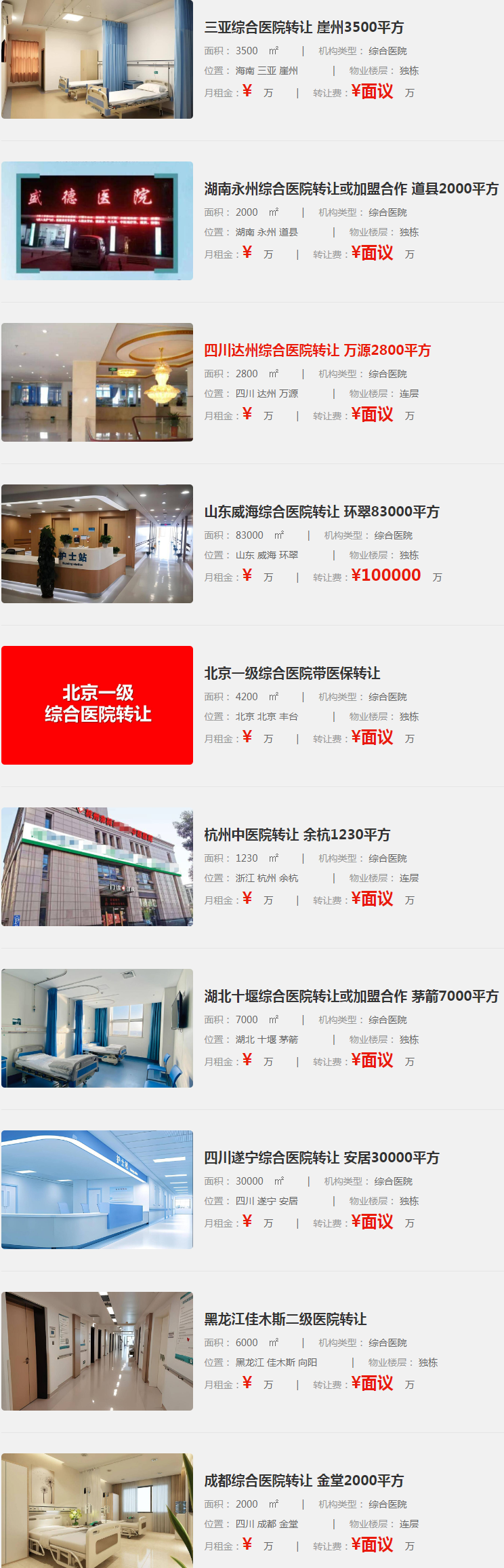 以下是指點網(wǎng)提供部分綜合醫(yī)院轉(zhuǎn)讓的詳細(xì)信息: