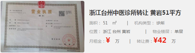浙江臺州中醫(yī)診所轉(zhuǎn)讓(黃巖51平方)