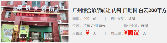 廣州綜合診所轉(zhuǎn)讓(內(nèi)科口腔科白云200平方)