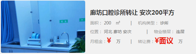 廊坊口腔診所轉(zhuǎn)讓(安次200平方)