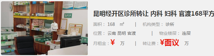 昆明經(jīng)開區(qū)診所轉(zhuǎn)讓(官渡168平方)