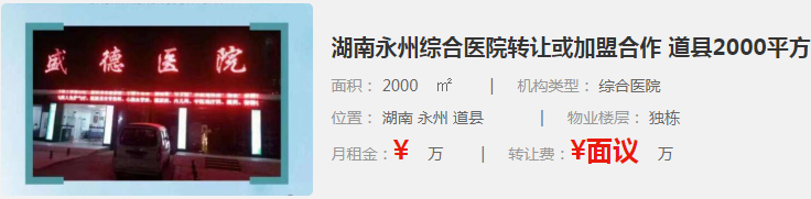 醫(yī)院因資金不足難以維持現(xiàn)狀,現(xiàn)在低價(jià)轉(zhuǎn)讓,歡迎來(lái)電咨詢!
