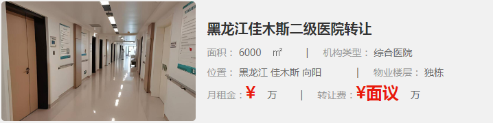 佳木斯二級(jí)民營(yíng)醫(yī)院中心位置,2017年成立。面積6000平,設(shè)計(jì)床位100張,科室齊全,設(shè)備完善,特色科室康復(fù)科,內(nèi)科,中醫(yī)科,處于滿床狀態(tài)。病源穩(wěn)定,交通便利。因老板南遷,現(xiàn)對(duì)外轉(zhuǎn)讓!有意者請(qǐng)聯(lián)系我。
