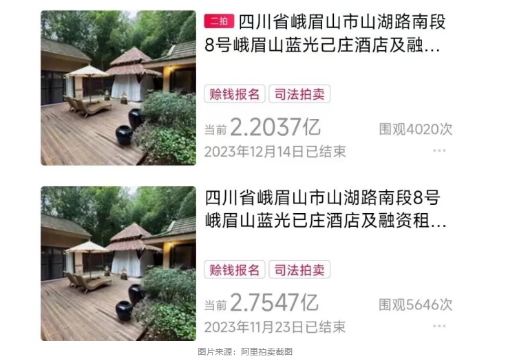 法院出具的拍賣標(biāo)的調(diào)查情況報(bào)告顯示,己莊的拍品所有人為峨眉山藍(lán)光文化旅游置業(yè)有限公司。抵押權(quán)人為山西信托,債權(quán)金額為2.5億元。而且這兩次拍賣是整體拍賣,不單單是拍賣酒店的房產(chǎn)及土地使用權(quán),還包括酒店各種設(shè)備設(shè)施等。也就是說,競得者買下來就可以繼續(xù)經(jīng)營。