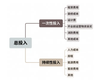 裝修投入對(duì)于不同的酒店金額各不相同,影響的因素也較多;持續(xù)性投入主要包含酒店在營(yíng)期間的全部成本和費(fèi)用,其中包含房租、客用品、人力成本、能源等各項(xiàng)經(jīng)營(yíng)中產(chǎn)生的費(fèi)用。