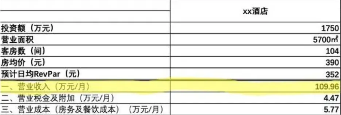 案例一,高估酒店的經(jīng)營(yíng)數(shù)值
