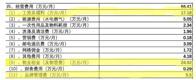 值得一提的是,在運(yùn)營(yíng)成本中,除了常態(tài)的品牌管理費(fèi)用中所產(chǎn)生的費(fèi)用外,員工工資、水電費(fèi)、網(wǎng)費(fèi)、餐廳食材費(fèi)用、辦公用品的消耗、工程維護(hù)等費(fèi)用也占了很多的比重。