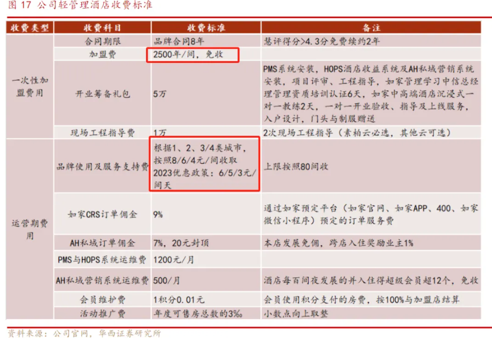 據(jù)說,表面看起來輕管理支付給品牌方的加盟費并不高,但后續(xù)的CRS訂單傭金、品牌推廣費、系統(tǒng)使用費、財務(wù)費等費用加在一起也并不低。