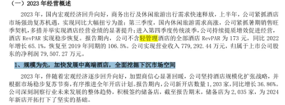 這去年的年報有所不同,去年是這樣描述的:加快開店速度,深入滲透下沉市場,2023年計劃新開酒店1500-1600家。由此可見,首旅認(rèn)識到問題了,在主動降速。