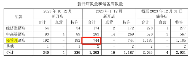 2023年,首旅定下的開店計劃是1500-1600家,實際完成了 1203家,按最低目標(biāo)計算,完成了是80%。