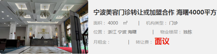 寧波美容門(mén)診轉(zhuǎn)讓或加盟合作 海曙4000平方