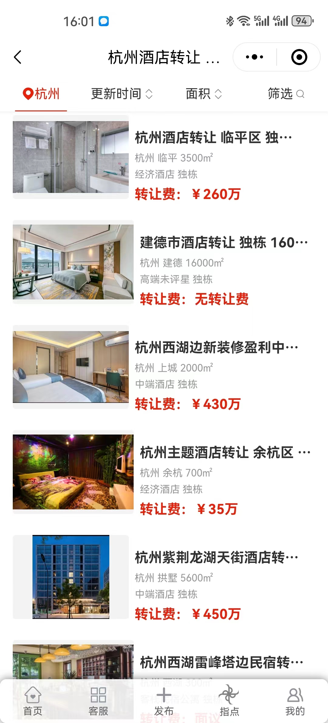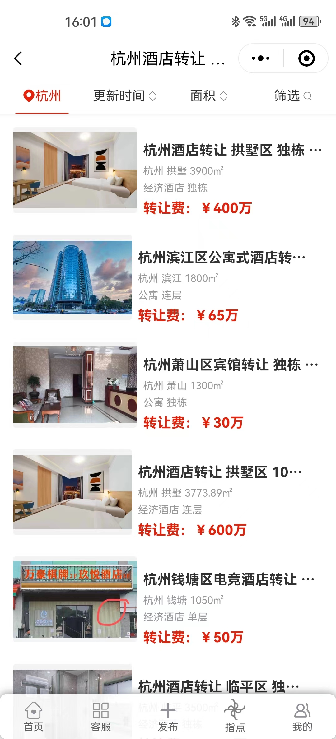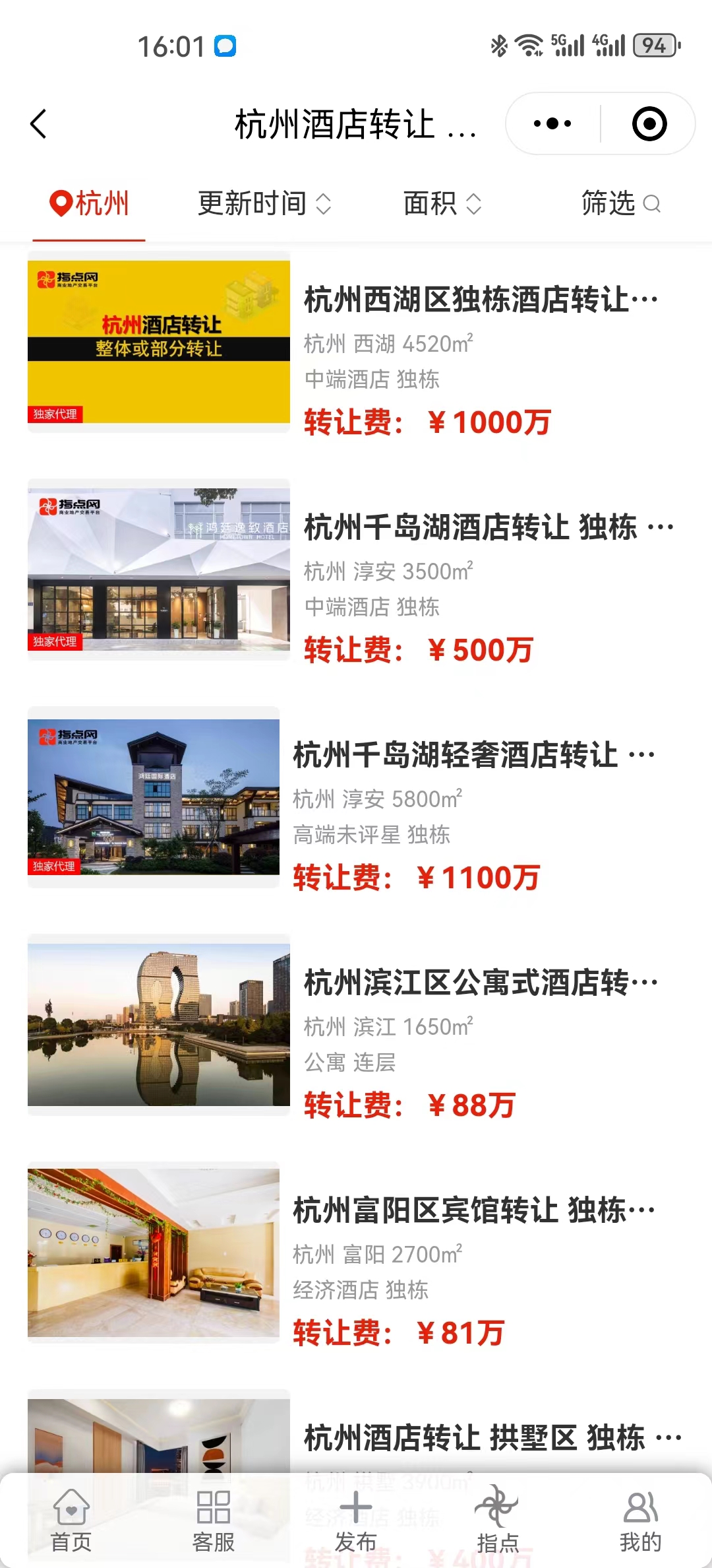 指點網(wǎng)旗下酒店交易網(wǎng)是國內(nèi)最大的酒店轉(zhuǎn)讓物業(yè)交易平臺,注冊用戶超50萬。平臺致力于提供國內(nèi)外酒店轉(zhuǎn)讓、酒店物業(yè)招租、酒店資產(chǎn)出售、酒店周邊產(chǎn)品與服務(wù)信息等綜合服務(wù),打造真實有效的酒店交易平臺,已是酒店行業(yè)必用平臺之一。