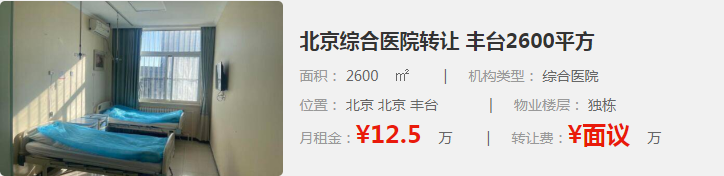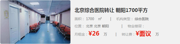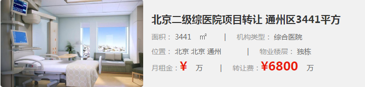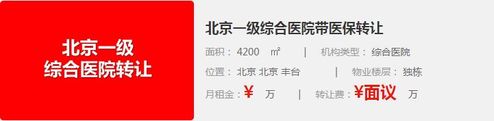 二、以下是五家位于北京的綜合醫(yī)院轉(zhuǎn)讓信息匯總: