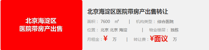 北京海淀區(qū)醫(yī)院帶房產(chǎn)出售轉(zhuǎn)讓