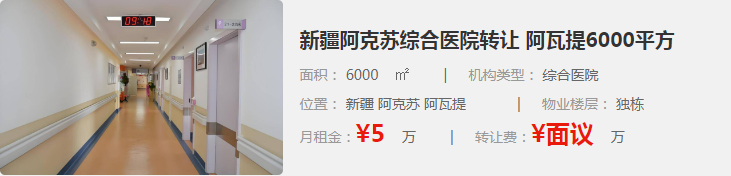 阿克蘇地區(qū)醫(yī)院,樓有6層帶電梯,總投資1200萬, 2021年開設,因疫情期間裝修延誤,于23年8月開業(yè),設立內(nèi)科,外科,婦科,中醫(yī)科,理療科,皮膚科,口腔科,床位批49張, (可以批99張)。 全縣人口30萬,醫(yī)保在6月份可以下來。裝修布格都很好,設備有DR ,彩超兩個,化驗室、手術室、治療室的儀器齊全。因無心經(jīng)營,現(xiàn)折價轉(zhuǎn)讓,有意者請聯(lián)系,中介勿擾