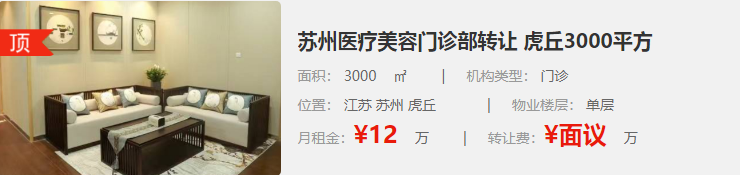 蘇州醫(yī)療美容門診部轉(zhuǎn)讓 虎丘3000平方