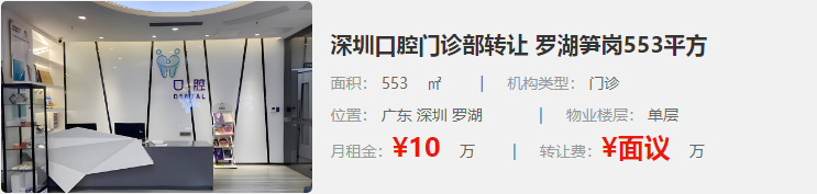 深圳口腔門診部轉(zhuǎn)讓 羅湖筍崗553平方