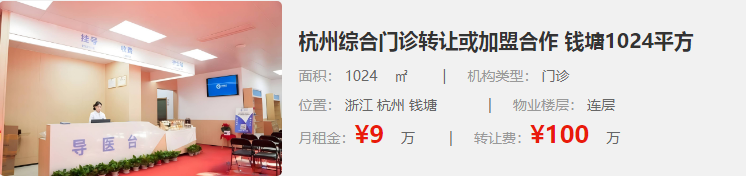 杭州綜合門診轉(zhuǎn)讓或加盟合作 錢塘1024平方
