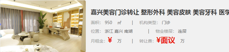 嘉興美容門診轉(zhuǎn)讓 整形外科 美容皮膚 美容牙科 醫(yī)學檢驗科 南湖950平方