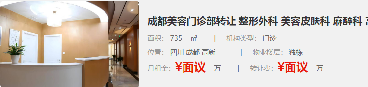 成都美容門診部轉(zhuǎn)讓 整形外科 美容皮膚科 麻醉科 高新735平方