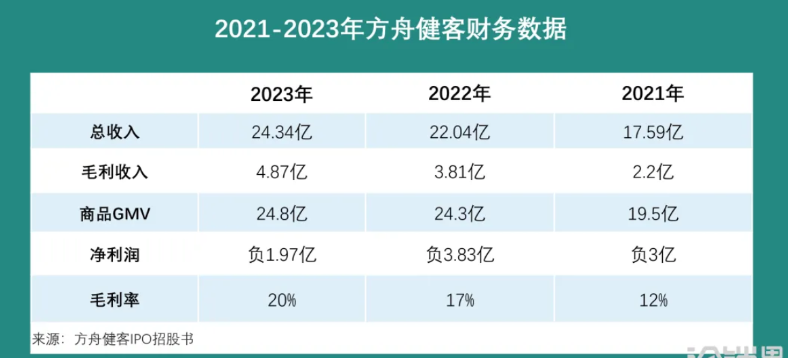 最終方舟云康形成了全方位綜合慢病管理服務(wù)的商業(yè)模式,具體包括了三大收入板塊和業(yè)務(wù)類型。如綜合醫(yī)療服務(wù)(即線下首診后,患者及醫(yī)生可線上復(fù)診,醫(yī)生可通過(guò)公司的醫(yī)院到家(H2H服務(wù))平臺(tái)開(kāi)具電子處方)、在線零售藥店服務(wù)、面向醫(yī)藥公司定制化醫(yī)學(xué)內(nèi)容及營(yíng)銷解決方案等三大類業(yè)務(wù)。2023年方舟健客營(yíng)業(yè)收入為24.3億元,藥品整體收入占比在96%,整個(gè)營(yíng)收結(jié)構(gòu)中網(wǎng)上藥店零售業(yè)務(wù)占比53%,線上診療服務(wù)+藥品收入占比40%。2023年整體經(jīng)營(yíng)毛利率為20%,因經(jīng)營(yíng)、股東優(yōu)先股兌換、上市開(kāi)支增大等原因仍然處于虧損。