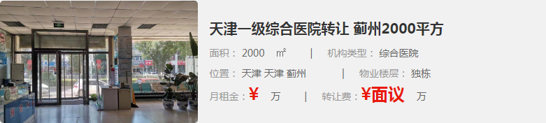 天津一級(jí)綜合醫(yī)院轉(zhuǎn)讓 薊州2000平方