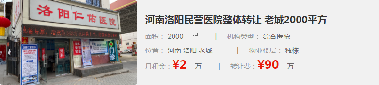 河南洛陽(yáng)民營(yíng)醫(yī)院整體轉(zhuǎn)讓 老城2000平方