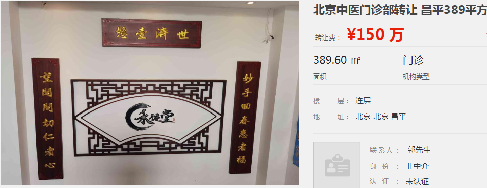 北京中醫(yī)門診部轉(zhuǎn)讓 昌平389平方