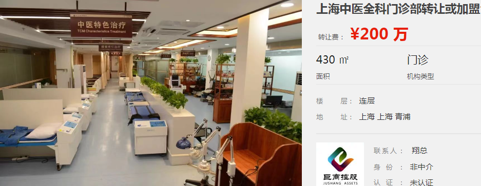 上海中醫(yī)全科門診部轉(zhuǎn)讓或加盟合作 青浦430平方