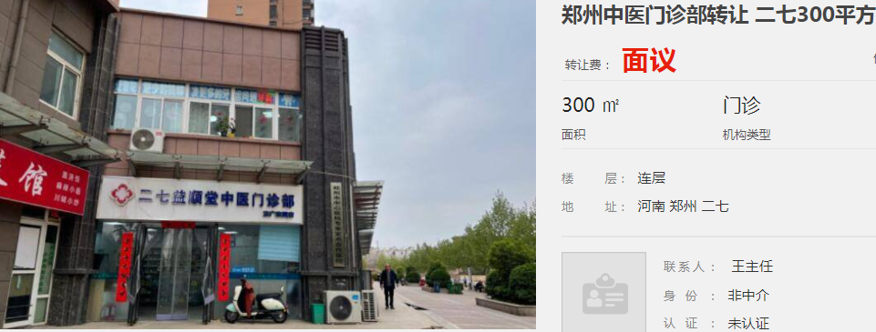 鄭州中醫(yī)門診部轉(zhuǎn)讓 二七300平方