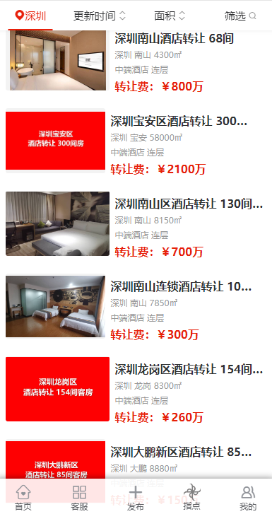 寶安區(qū)有兩家酒店值得關(guān)注,一家是103間房的中端酒店,面積為4600平方米,月租金為16.5萬(wàn)元,無(wú)轉(zhuǎn)讓費(fèi)。另一家是300間房的五星級(jí)標(biāo)準(zhǔn)酒店,面積高達(dá)30000平方米,月租金面議,也無(wú)轉(zhuǎn)讓費(fèi)。