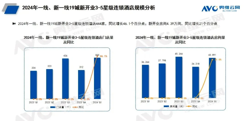 奧維云網(wǎng)(AVC)監(jiān)測(cè)數(shù)據(jù)顯示,2024年一季度,全國新開業(yè)酒店門店量1.14萬家,全國新開業(yè)連鎖酒店門店量1537家,占全國新開業(yè)酒店門店量的13.5%;