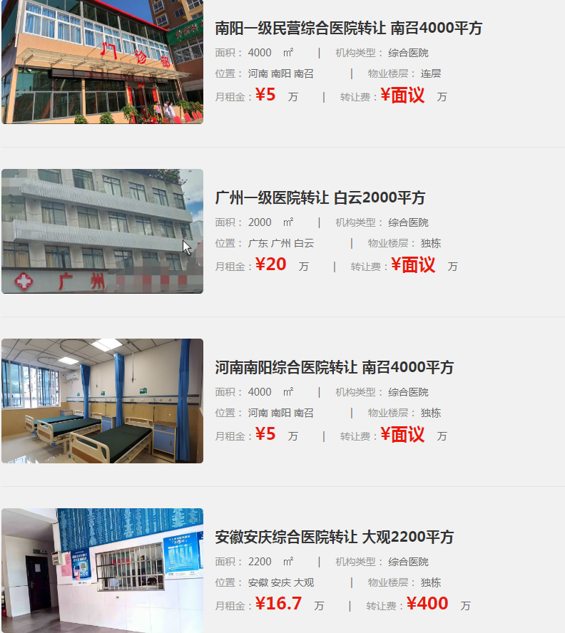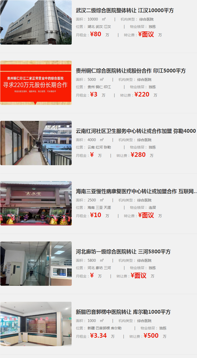 以下指點網(wǎng)提供整理后部分醫(yī)院轉(zhuǎn)讓信息