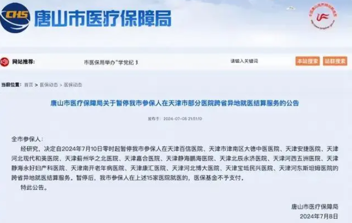 (唐山市醫(yī)療保障局關(guān)于暫停我市參保人在天津市部分醫(yī)院跨省異地就醫(yī)結(jié)算服務(wù)的公告)