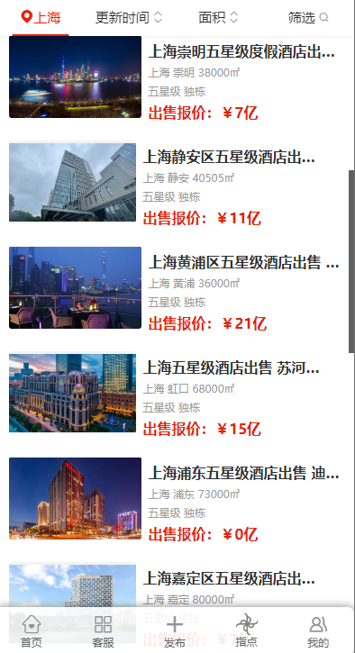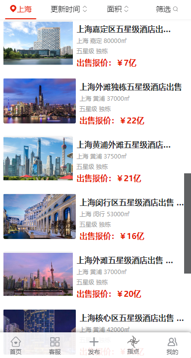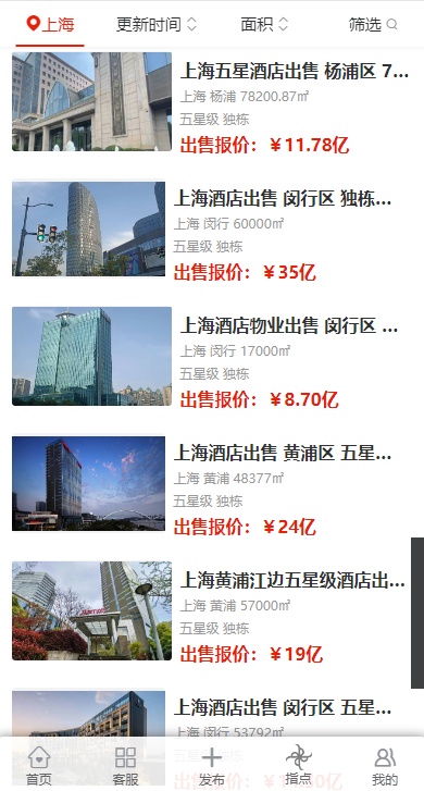 其中,上海外灘頂級奢華五星級酒店出售面積為3.7萬平,房間數(shù)量200間,出售報價20億;上海浦東迪士尼旁五星級酒店出售面積為7.4萬平,房間數(shù)量360間,出售報價12億;上海黃浦區(qū)五星級酒店出售面積為11萬平,房間數(shù)量700間,出售報價25億。