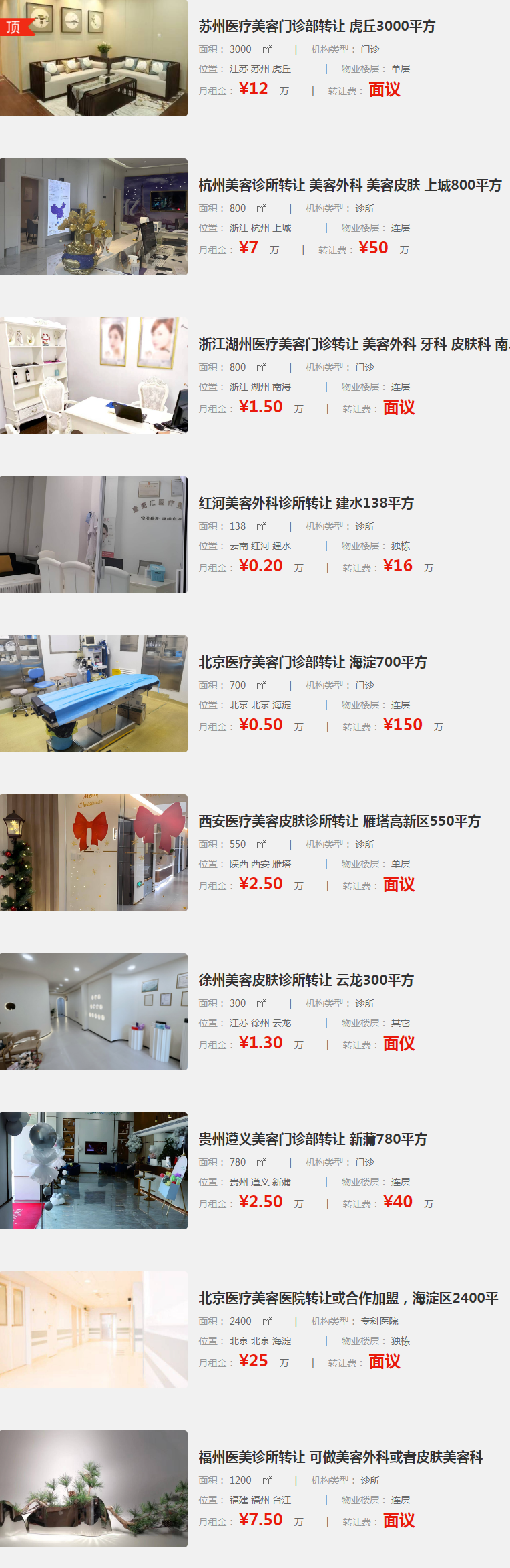 以下指點(diǎn)網(wǎng)提供整理部分醫(yī)療美容轉(zhuǎn)讓信息