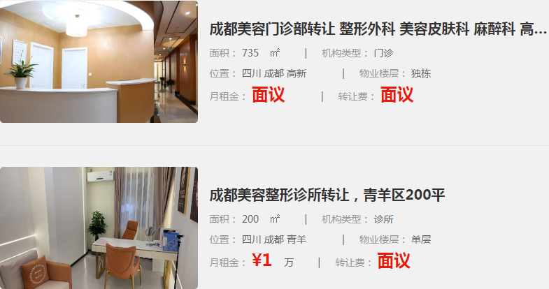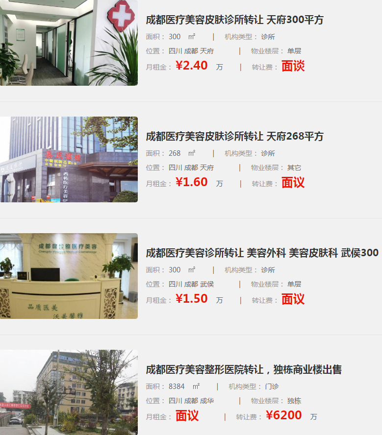 三、成都地區(qū)美容門診部轉(zhuǎn)讓實例