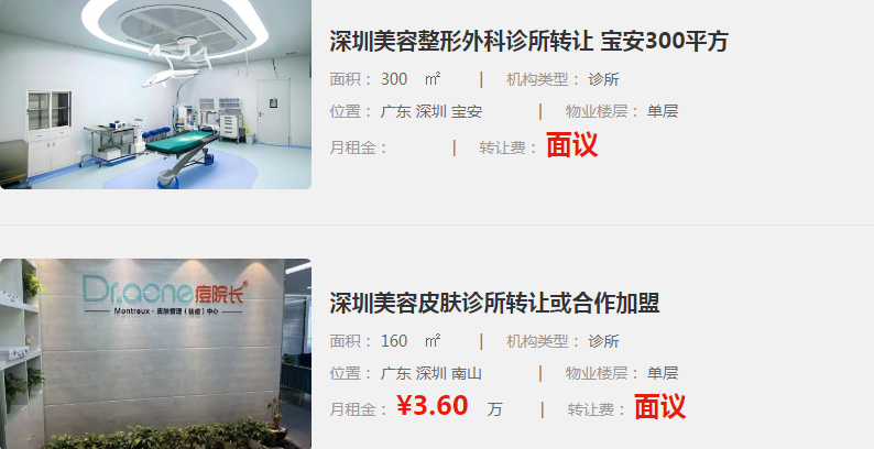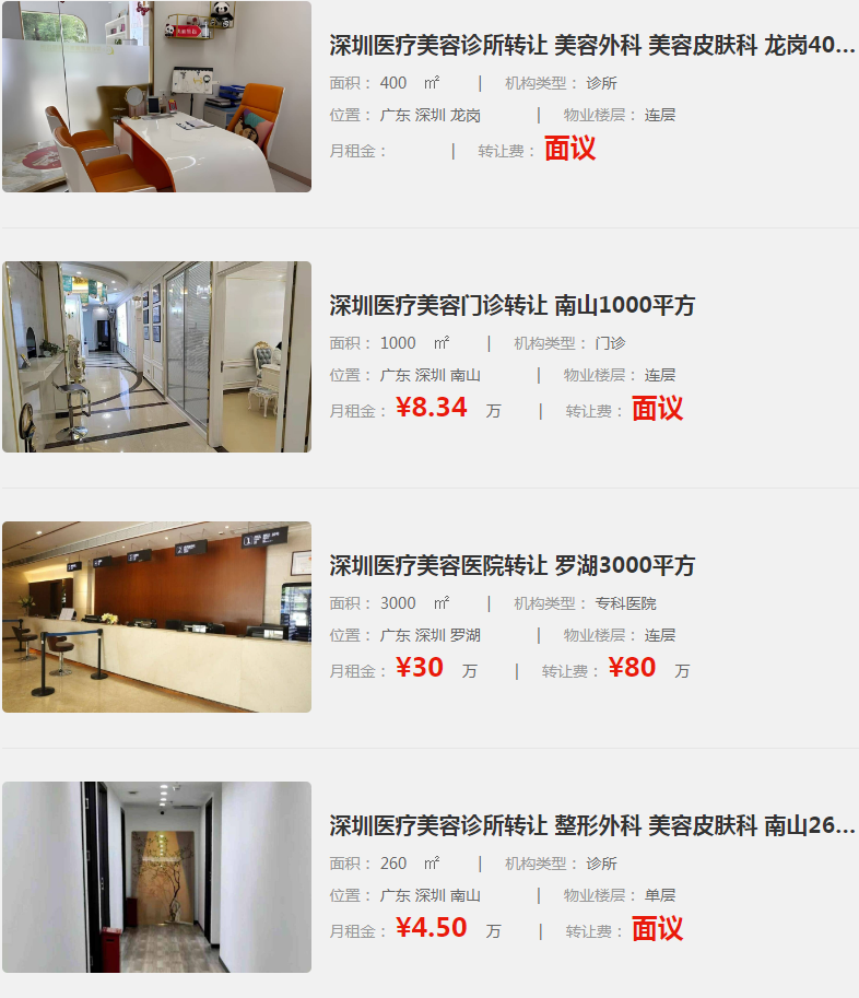 指點網(wǎng)上關(guān)于深圳美容整形醫(yī)院的轉(zhuǎn)讓信息豐富多樣,以下是一些具體案例: