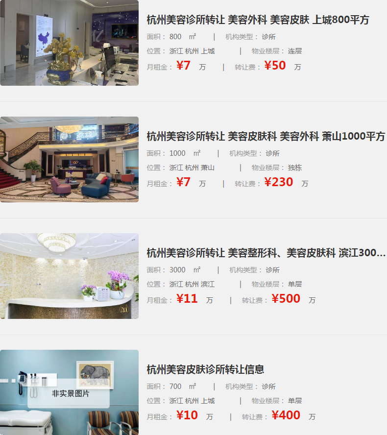 信息全面:平臺(tái)涵蓋了杭州地區(qū)乃至全國范圍內(nèi)的醫(yī)美機(jī)構(gòu)轉(zhuǎn)讓信息,包括美容診所、醫(yī)療美容門診部等多種類型。無論是規(guī)模大小、經(jīng)營范圍還是轉(zhuǎn)讓價(jià)格,投資者都能在這里找到適合自己的項(xiàng)目。