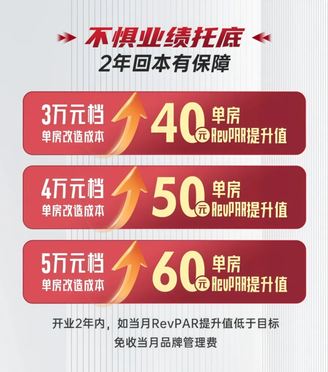 基于過去400多家改造店的成功經(jīng)驗,柏曼詳細分析各項改造的成本效益比后,今年更是將回本目標從三年回報周期縮短至兩年,通過精確匹配單房改造成本與RevPAR提升目標(如3萬元成本對應(yīng)至少40元的RevPAR增長值),為投資人提供了明確的投資回報路徑,強化收益管理,同時還輔以全方位的加盟、設(shè)計、工程到運營多個板塊支持,涵蓋多項費用的減免及補貼,全面減輕投資人的初期負擔(dān),促進項目的成功落地。