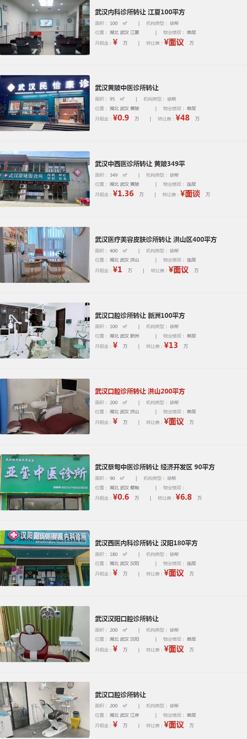 武漢內(nèi)科診所轉(zhuǎn)讓 江夏100平方