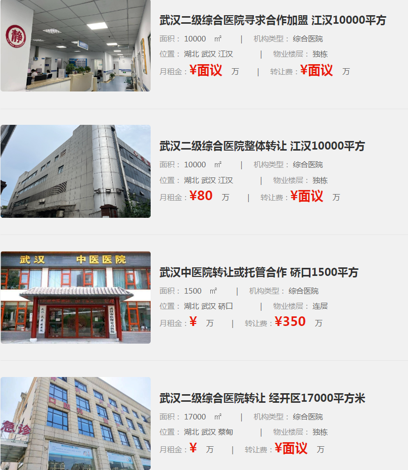武漢二級綜合醫(yī)院整體轉(zhuǎn)讓 江漢10000平方