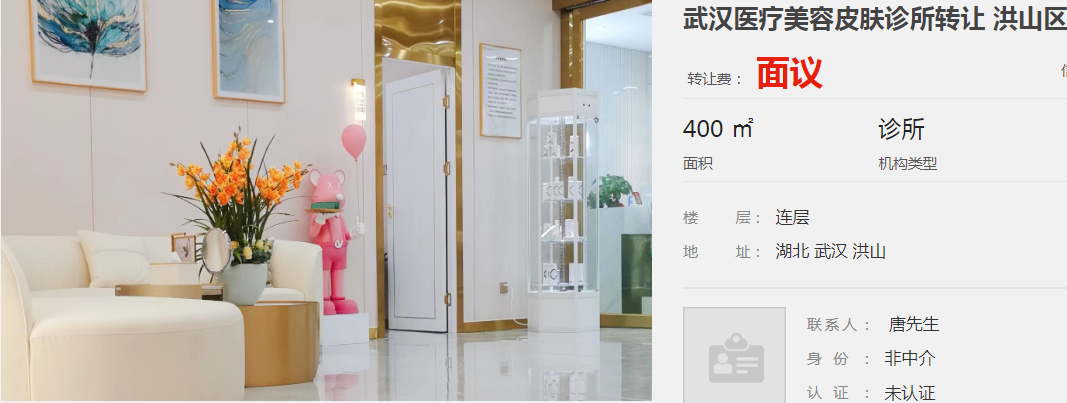 武漢醫(yī)療美容皮膚診所轉(zhuǎn)讓 洪山區(qū)400平方