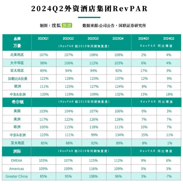 萬豪、希爾頓、洲際集團凈利潤全部為正,但RevPAR則出現(xiàn)“全球增長、中國區(qū)普遍放緩”的情況。